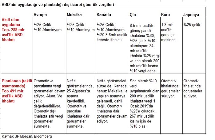 Yukarıdaki tablodan da görüleceği gibi ABD sadece Çin ile olan ticaret anlaşmasını değil aynı zamanda diğer ülkelerle olan ticaret anlaşmalarını da yenilemek istiyor. ABD'nin uyguladığı ve planlamak istediği bu vergilerin amacı ise iktisadi açıdan yeniden toparlanmaktır.Bir başka ifade ile yüklü miktarda dış ticaret açığı verdiği ülkelere karşı korumacı politikalar izleyerek iktisadi açıdan gücünü korumaktır.